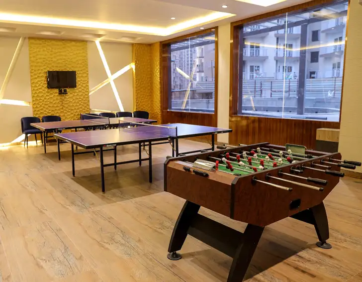 The Playing Cards Room is a luxurious space in the club of a society. It is decorated with gold and gilt, with an ornate ceiling and walls covered with paintings of kings and queens, card suits, and other playing cards. The room has been furnished with comfortable chairs, couches, tables and sofas. There are also two large cages where canaries sing softly in the background.